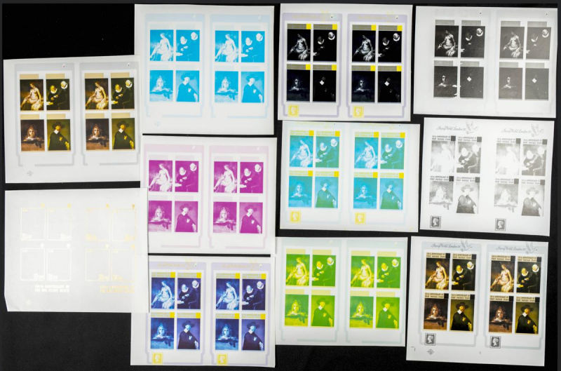 |**|1990. Rembrandt paintings. Group of progressive plate proofs of the set. (Michel: B116). TO EXAM. Description of lots is limited to the cataloguing of the stamps and their characteristics. The total of the material included