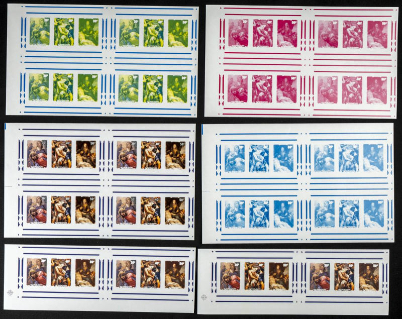 |**|Yvert B34. 1981. Christmas. Group of progressive plate proofs of the set. TO EXAM. Description of lots is limited to the cataloguing of the stamps and their characteristics. The total of the material included in each case is