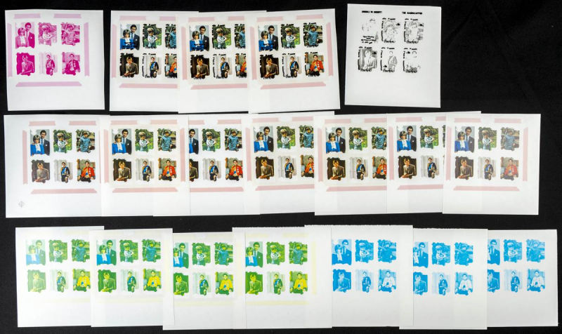 |**|Yvert B31. 1981. Charles & Diana wedding. Group of progressive plate proofs of the set. TO EXAM. Description of lots is limited to the cataloguing of the stamps and their characteristics. The total of the material included
