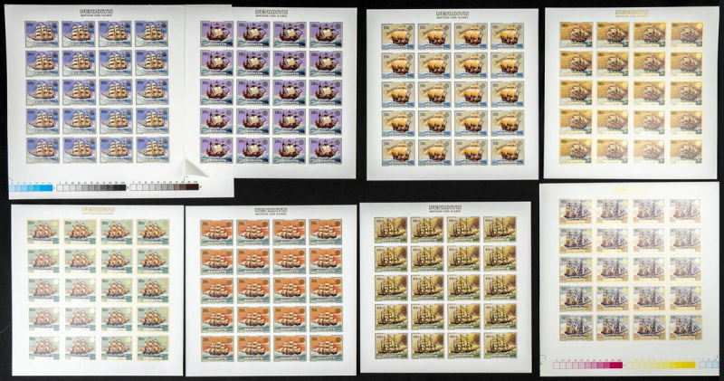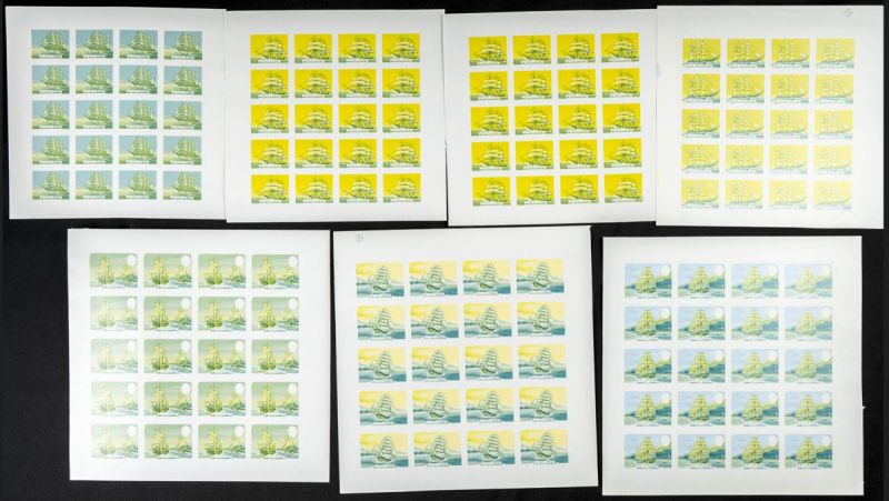 |**|Yvert 274/92. 1982. Sailing Ships. Group of progressive plate proofs of the set. TO EXAM. Description of lots is limited to the cataloguing of the stamps and their characteristics. The total of the material included in each