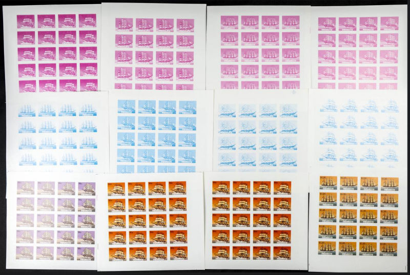 |**|Yvert 274/92. 1982. Sailing Ships. Group of IMPERFORATED sets. TO EXAM. Description of lots is limited to the cataloguing of the stamps and their characteristics. The total of the material included in each case is