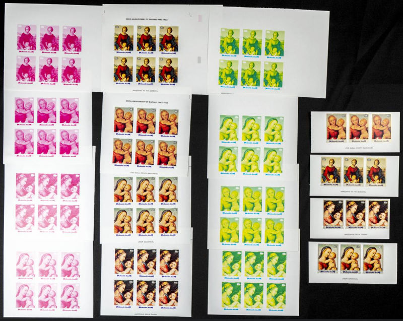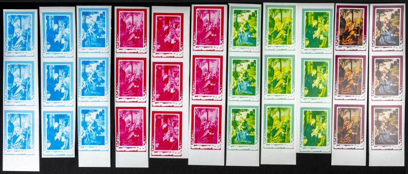 |**|Yvert B41. 1982. Christmas. Group of progressive plate proofs of the set. TO EXAM. Description of lots is limited to the cataloguing of the stamps and their characteristics. The total of the material included in each case is