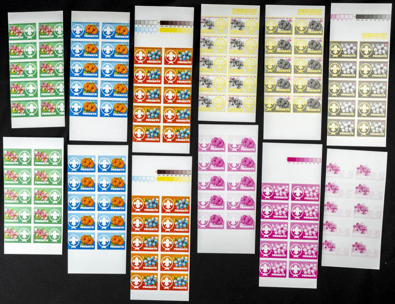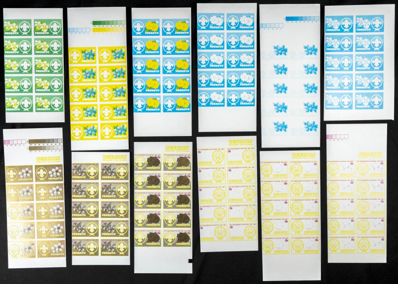 |**|Yvert B46. 1983. World jamboree. Group of progressive plate proofs of the set. TO EXAM. Description of lots is limited to the cataloguing of the stamps and their characteristics. The total of the material included in each