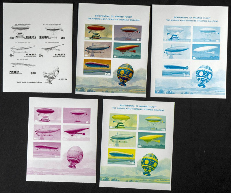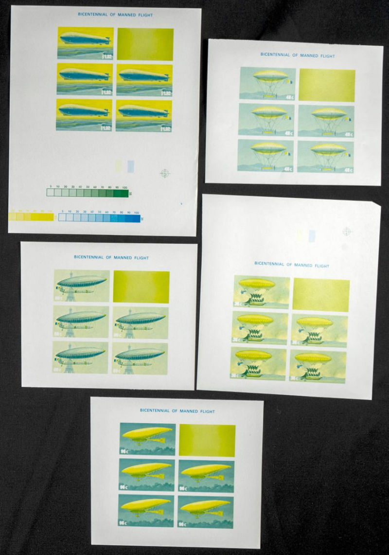 |**|Yvert B48. 1983. Aviation. Group of progressive plate proofs of the set. TO EXAM. Description of lots is limited to the cataloguing of the stamps and their characteristics. The total of the material included in each case is