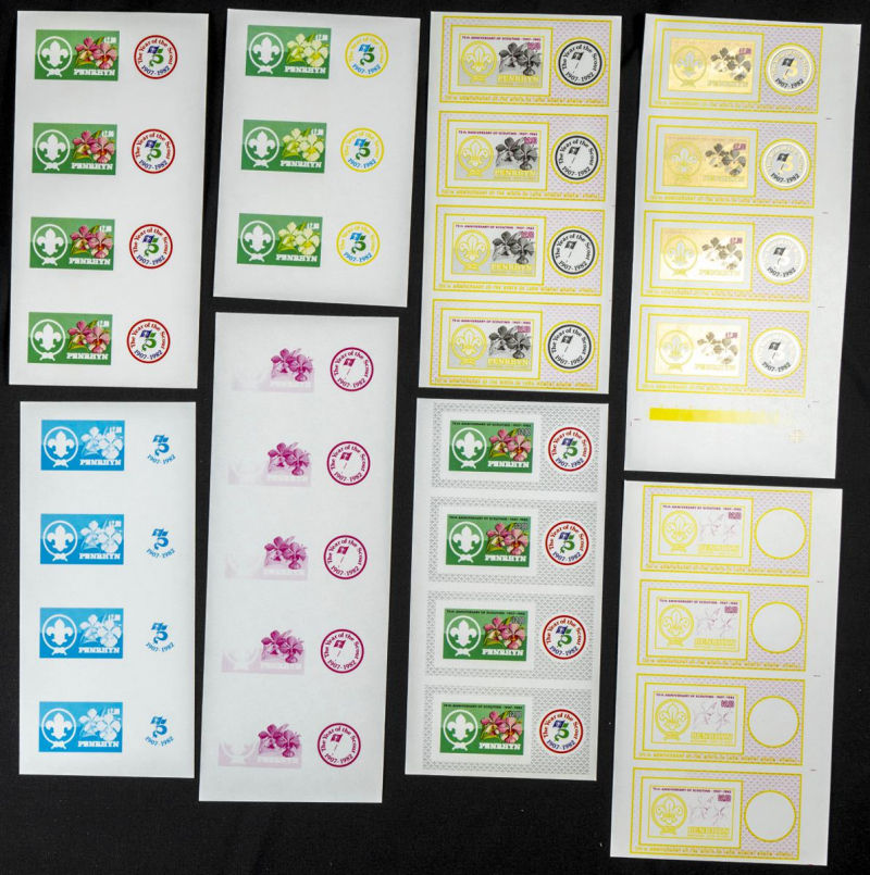 |**|Yvert B45. 1983. 75 years scouting. Group of progressive plate proofs of the set. TO EXAM. Description of lots is limited to the cataloguing of the stamps and their characteristics. The total of the material included in each