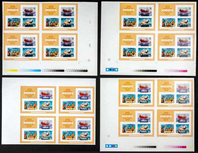 |**|Yvert 270/73. 1983. Christmas. Group of progressive plate proofs of the set. TO EXAM. Description of lots is limited to the cataloguing of the stamps and their characteristics. The total of the material included in each case