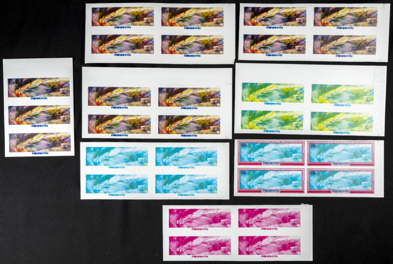 |**|Yvert B70. 1986. Halleys comet. Group of progressive plate proofs of the set. TO EXAM. Description of lots is limited to the cataloguing of the stamps and their characteristics. The total of the material included in each