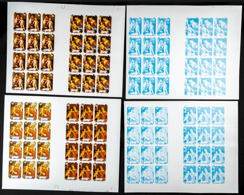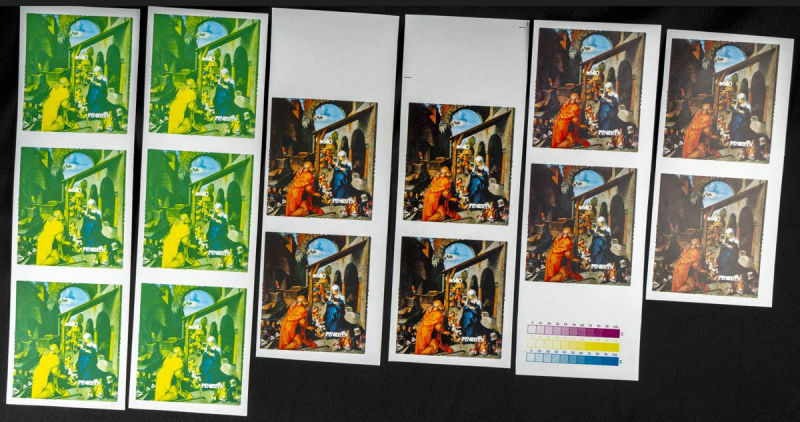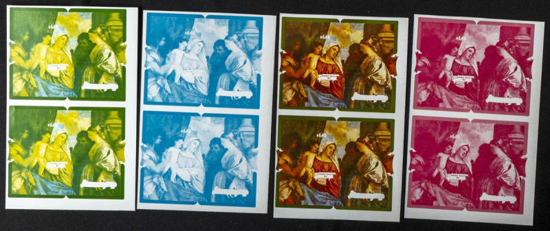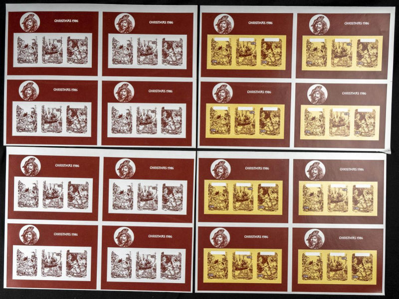 |**|Yvert B73. 1986. Christmas. Group of progressive plate proofs of the set. TO EXAM. Description of lots is limited to the cataloguing of the stamps and their characteristics. The total of the material included in each case is
