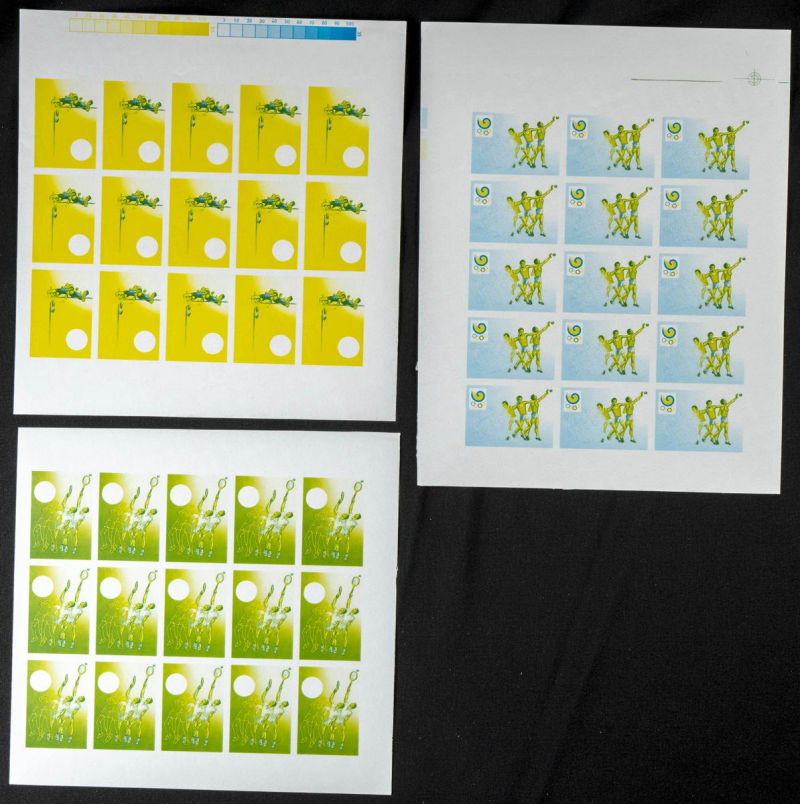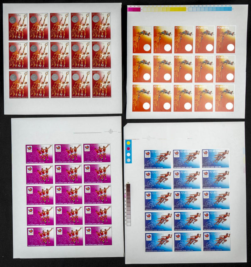 |**|Yvert B78A. 1988. Olympic Games Seoul. Group of progressive plate proofs of the set. TO EXAM. Description of lots is limited to the cataloguing of the stamps and their characteristics. The total of the material included in