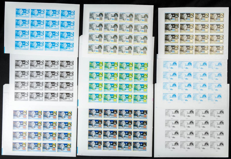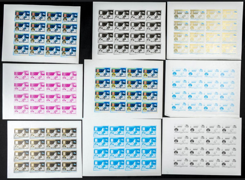 |**|Yvert 566/70. 1989. Moonlanding. Group of progressive plate proofs of the set. TO EXAM. Description of lots is limited to the cataloguing of the stamps and their characteristics. The total of the material included in each