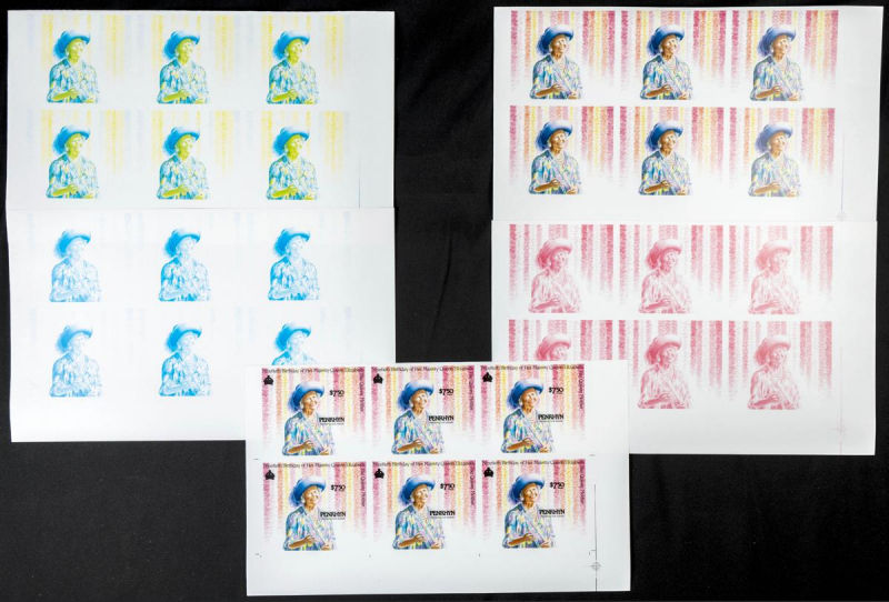 |**|Yvert 362. 1990. Queen mother. Group of progressive plate proofs of the set. TO EXAM. Description of lots is limited to the cataloguing of the stamps and their characteristics. The total of the material included in each case