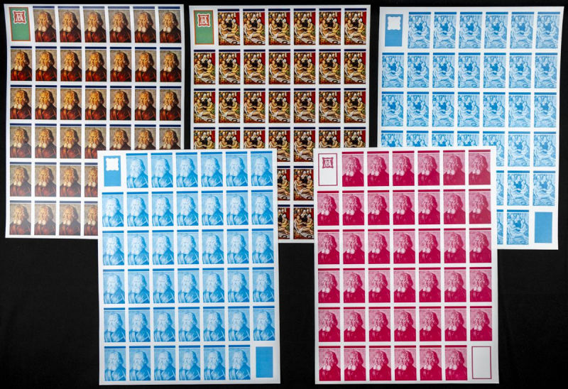 |**|Yvert 430/37. 1971. Durer paintings. Group of progressive plate proofs of the set. TO EXAM. Description of lots is limited to the cataloguing of the stamps and their characteristics. The total of the material included in