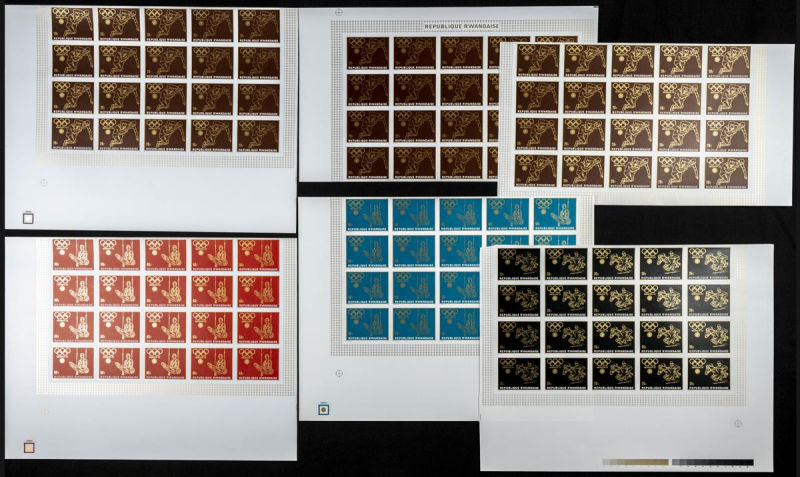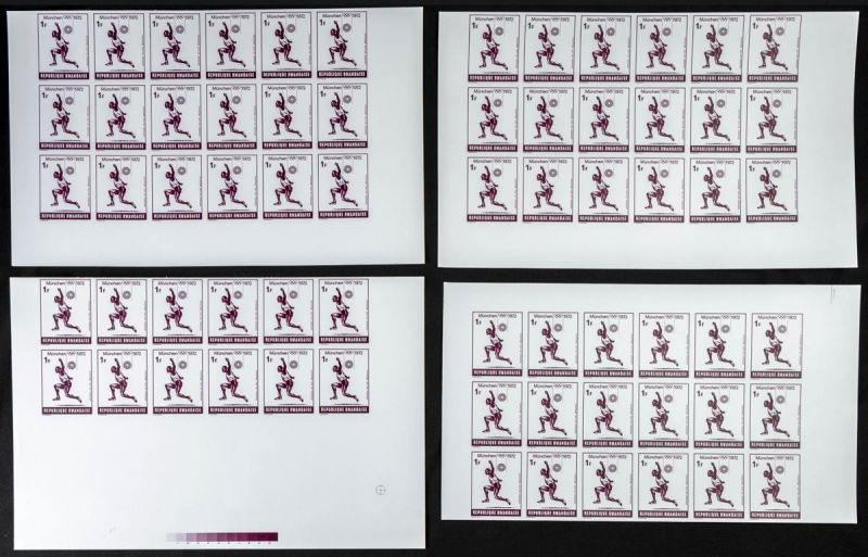 |**|Yvert 422/29. 1971. Olympic Games Munich. Group of progressive plate proofs of the set. TO EXAM. Description of lots is limited to the cataloguing of the stamps and their characteristics. The total of the material included