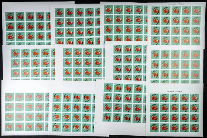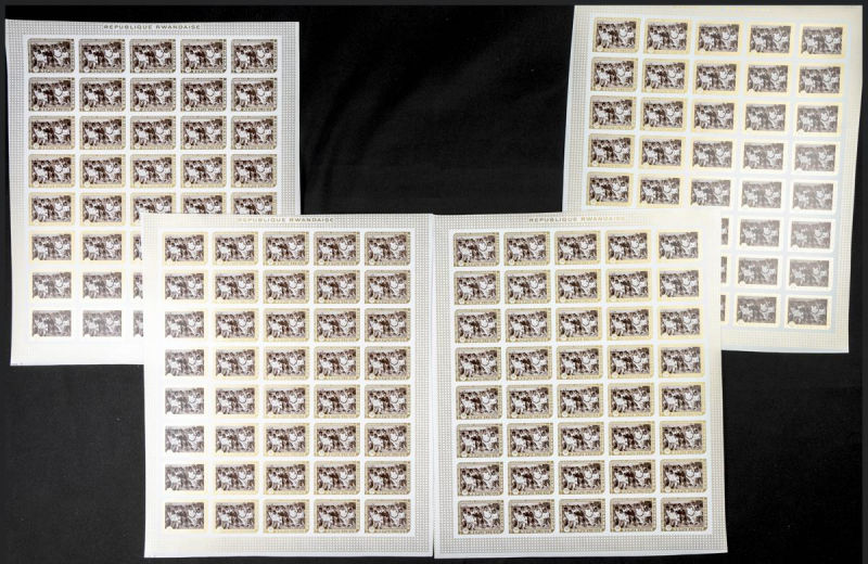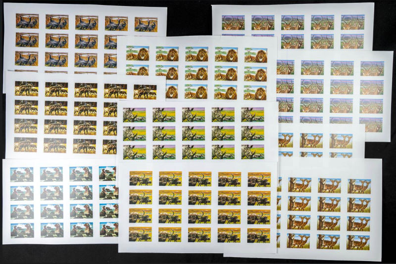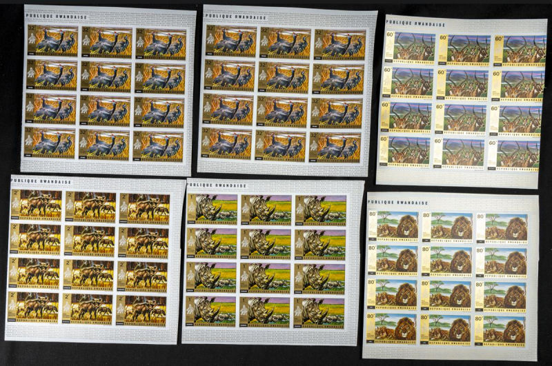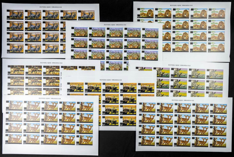 |**|Yvert 451/60. 1972. Akagera park. Group of IMPERFORATED sets. TO EXAM. Description of lots is limited to the cataloguing of the stamps and their characteristics. The total of the material included in each case is