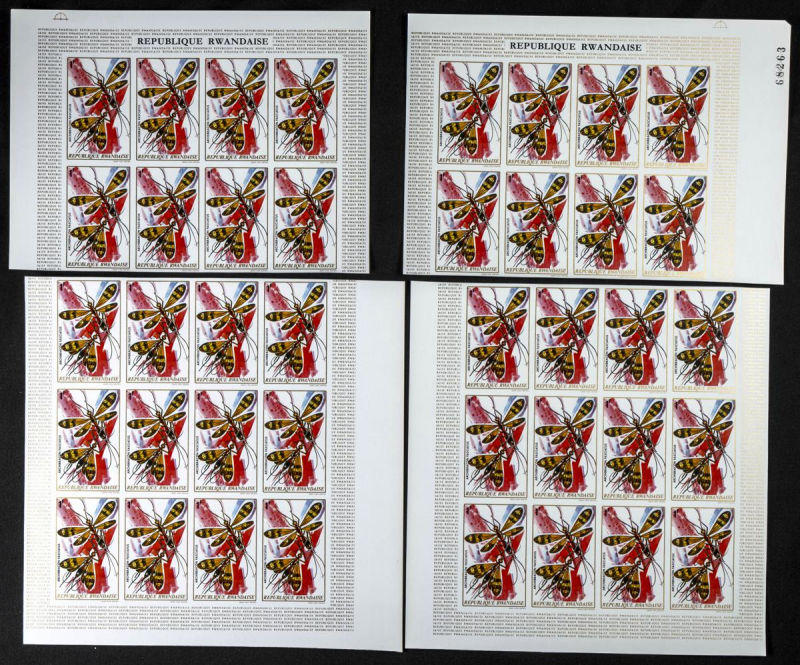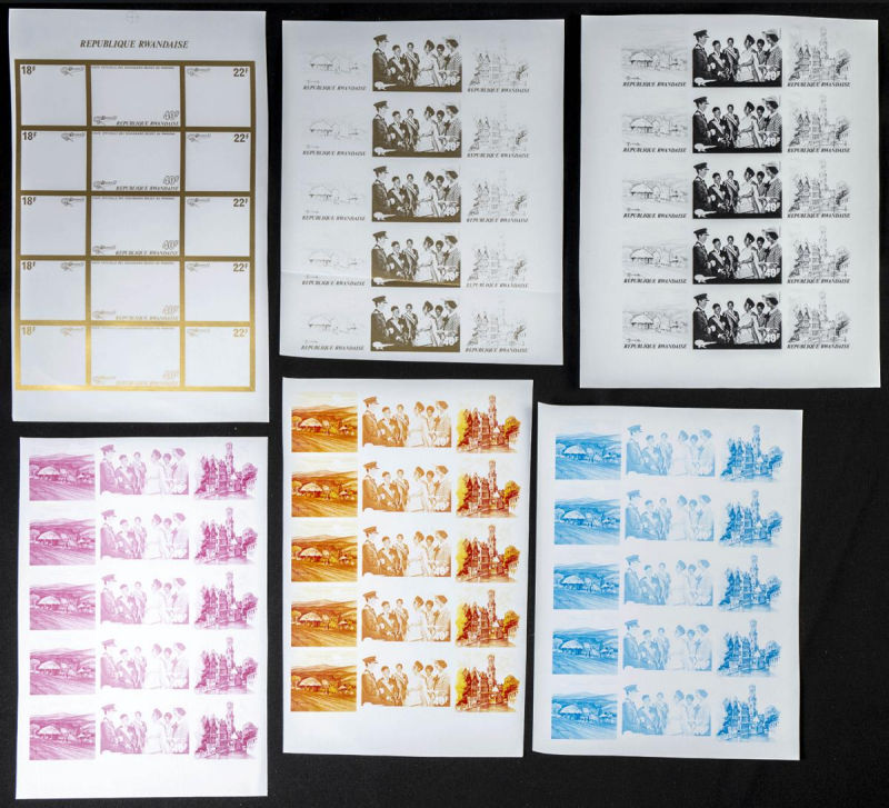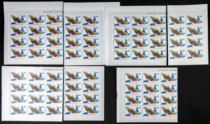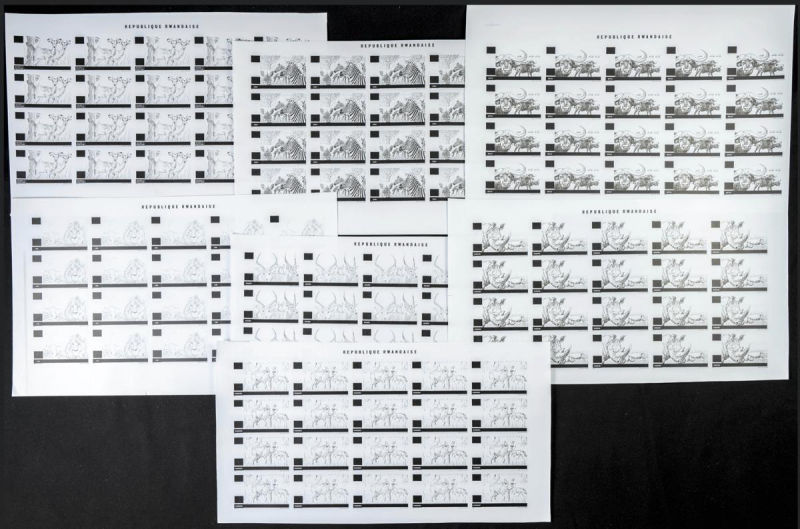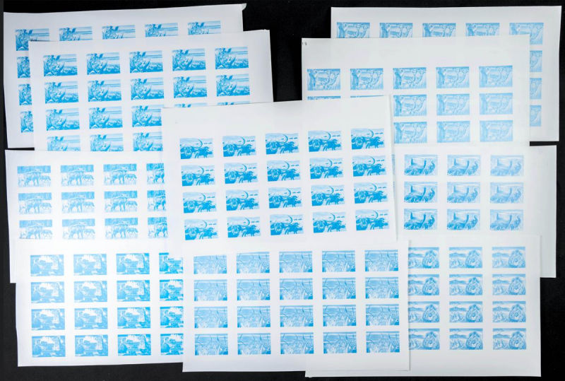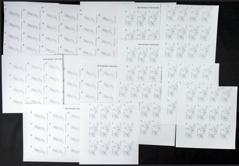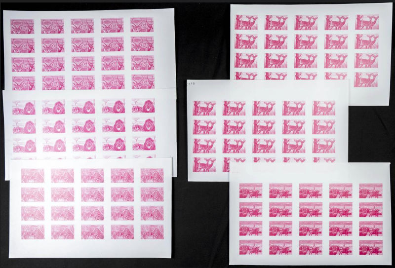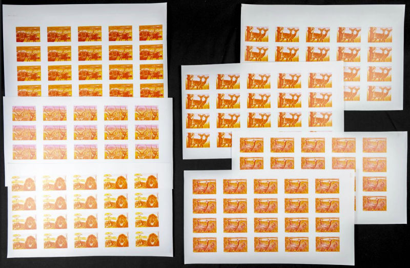 |**|Yvert 451/60. 1972. Akagera park. Group of progressive plate proofs of the set. TO EXAM. Description of lots is limited to the cataloguing of the stamps and their characteristics. The total of the material included in each