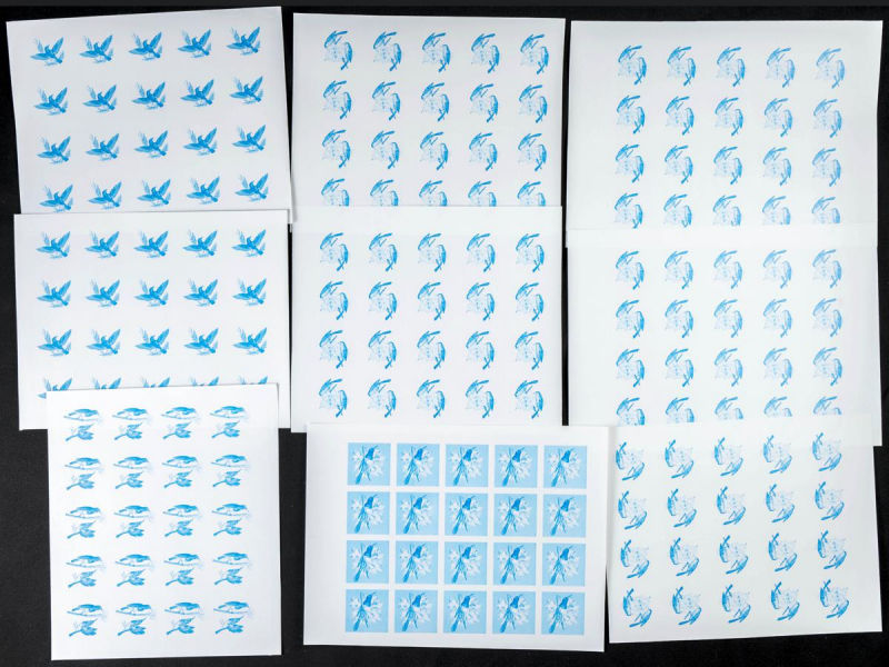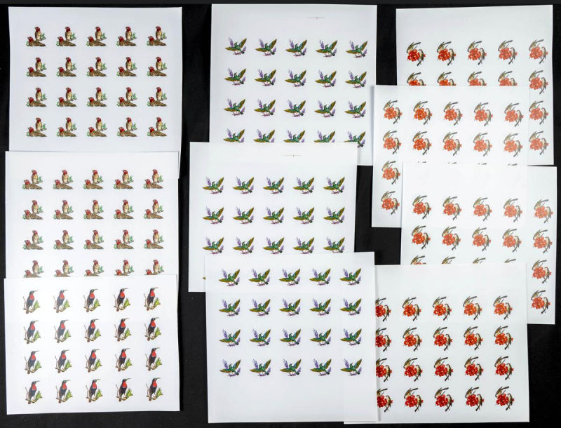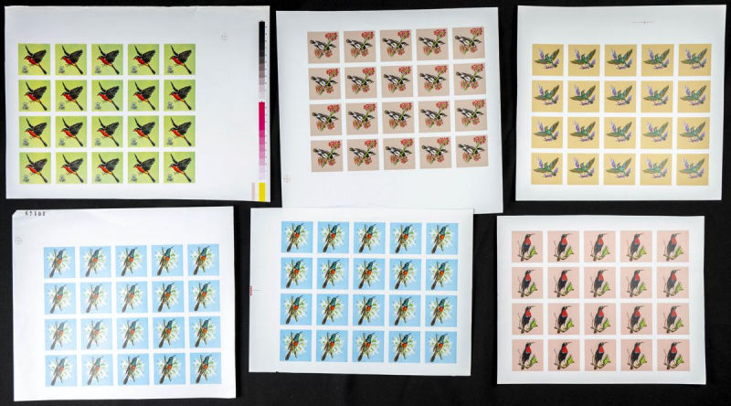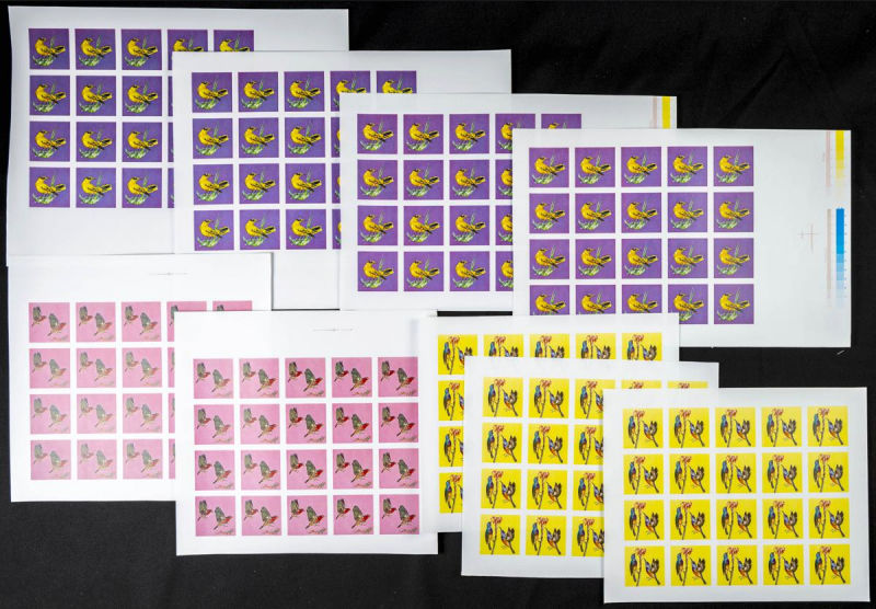 |**|Yvert 464/73. 1972. Birds. Group of progressive plate proofs of the set. TO EXAM. Description of lots is limited to the cataloguing of the stamps and their characteristics. The total of the material included in each case is