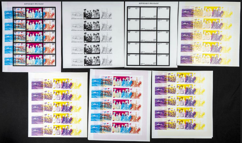 |**|Yvert 477/84. 1972. Independence 10th anniversary. Group of progressive plate proofs of the set. TO EXAM. Description of lots is limited to the cataloguing of the stamps and their characteristics. The total of the material