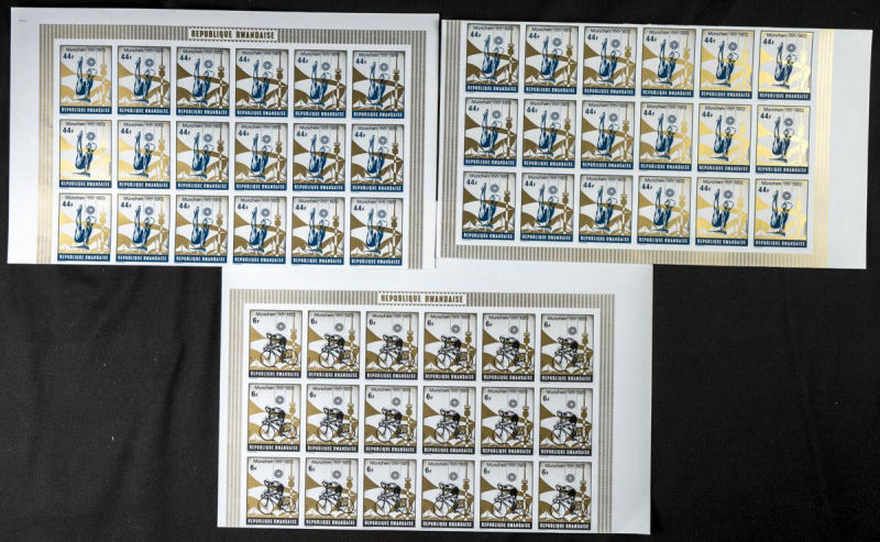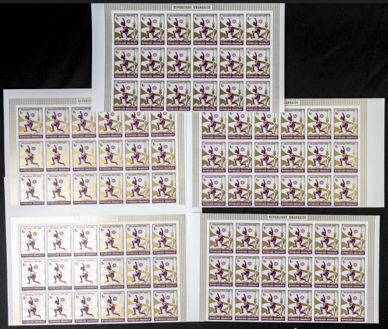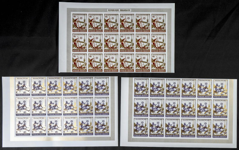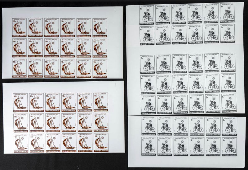 |**|Yvert 485/92. 1972. Olympic Games Munich. Group of IMPERFORATED sets. TO EXAM. Description of lots is limited to the cataloguing of the stamps and their characteristics. The total of the material included in each case is