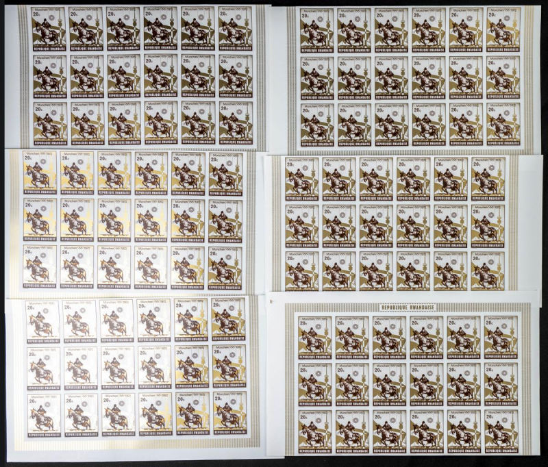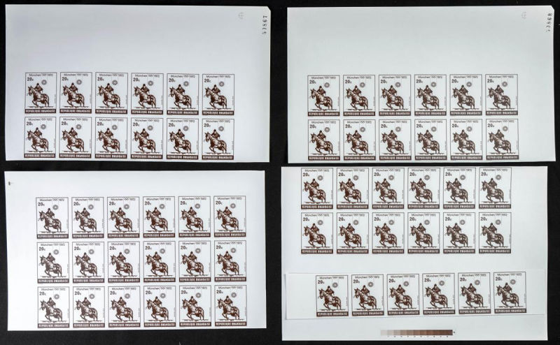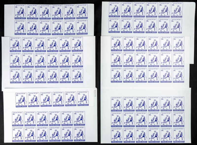 |**|Yvert 477/84. 1972. Independence 10th anniversary. Group of IMPERFORATED sets. TO EXAM. Description of lots is limited to the cataloguing of the stamps and their characteristics. The total of the material included in each