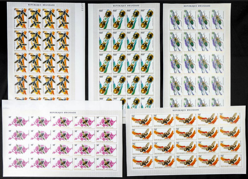 |**|Yvert 501/10. 1973. Insects. Group of IMPERFORATED sets. TO EXAM. Description of lots is limited to the cataloguing of the stamps and their characteristics. The total of the material included in each case is photographed to