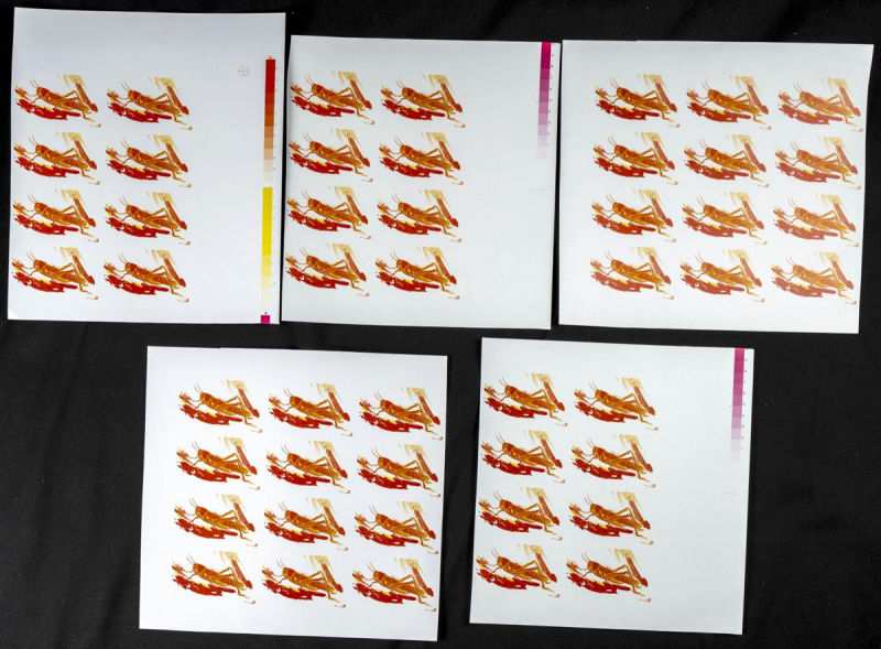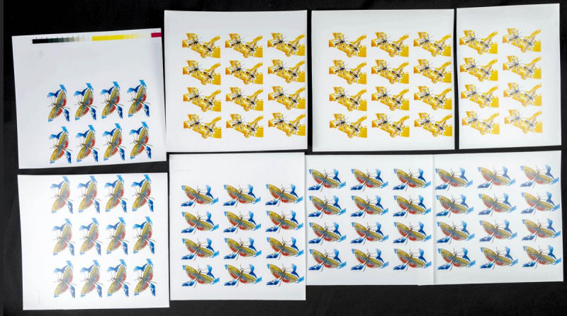 |**|Yvert 501/10. 1973. Insects. Group of progressive plate proofs of the set. TO EXAM. Description of lots is limited to the cataloguing of the stamps and their characteristics. The total of the material included in each case