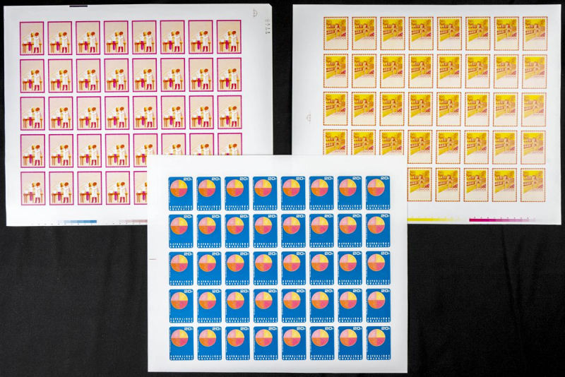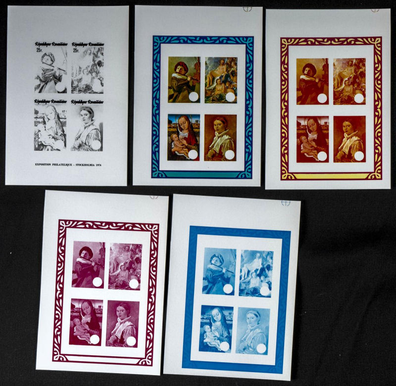 |**|Yvert B43. 1974. Philatelic expositions. Group of progressive plate proofs of the set. TO EXAM. Description of lots is limited to the cataloguing of the stamps and their characteristics. The total of the material included in