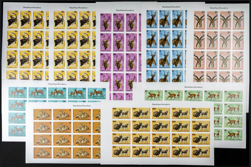 |**|Yvert 611/18. 1975. Antelopes. Group of IMPERFORATED sets. TO EXAM. Description of lots is limited to the cataloguing of the stamps and their characteristics. The total of the material included in each case is photographed