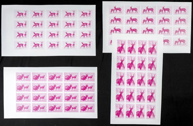 |**|Yvert 611/18. 1975. Antelopes. Group of progressive plate proofs of the set. TO EXAM. Description of lots is limited to the cataloguing of the stamps and their characteristics. The total of the material included in each case