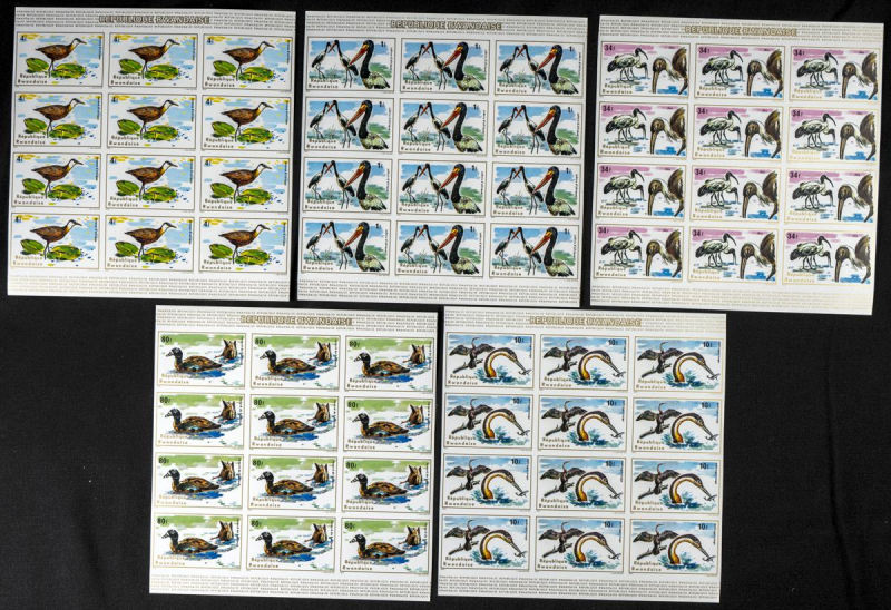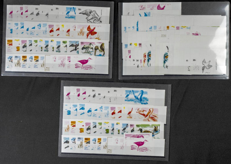 |**|Yvert 635/42. 1975. Water birds. Group of IMPERFORATED sets. TO EXAM. Description of lots is limited to the cataloguing of the stamps and their characteristics. The total of the material included in each case is photographed
