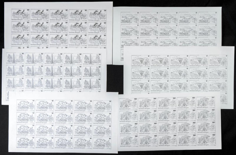 |**|Yvert 660/67. 1975. Nature conservation. Group of progressive plate proofs of the set. TO EXAM. Description of lots is limited to the cataloguing of the stamps and their characteristics. The total of the material included in