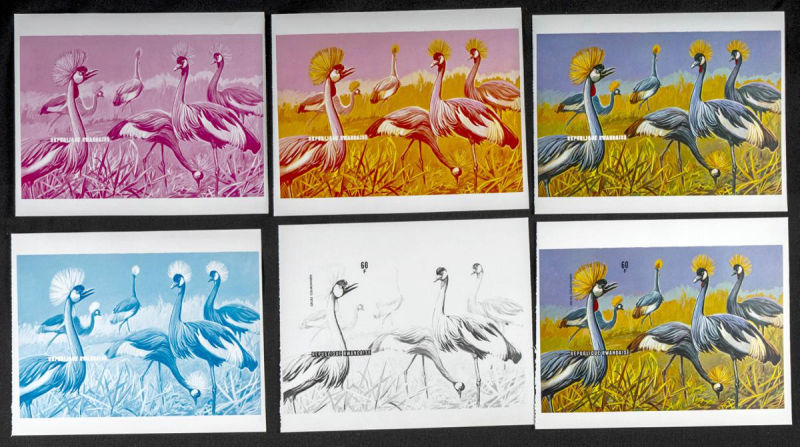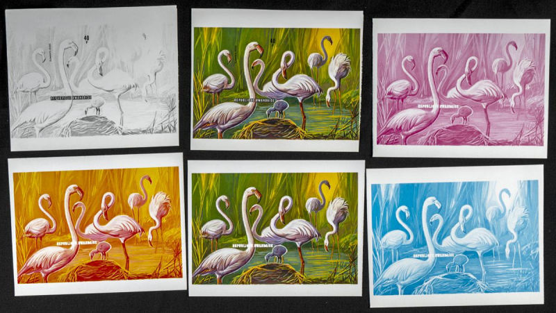 |**|Yvert B59/60. 1975. Water birds. Group of progressive plate proofs of the set. TO EXAM. Description of lots is limited to the cataloguing of the stamps and their characteristics. The total of the material included in each