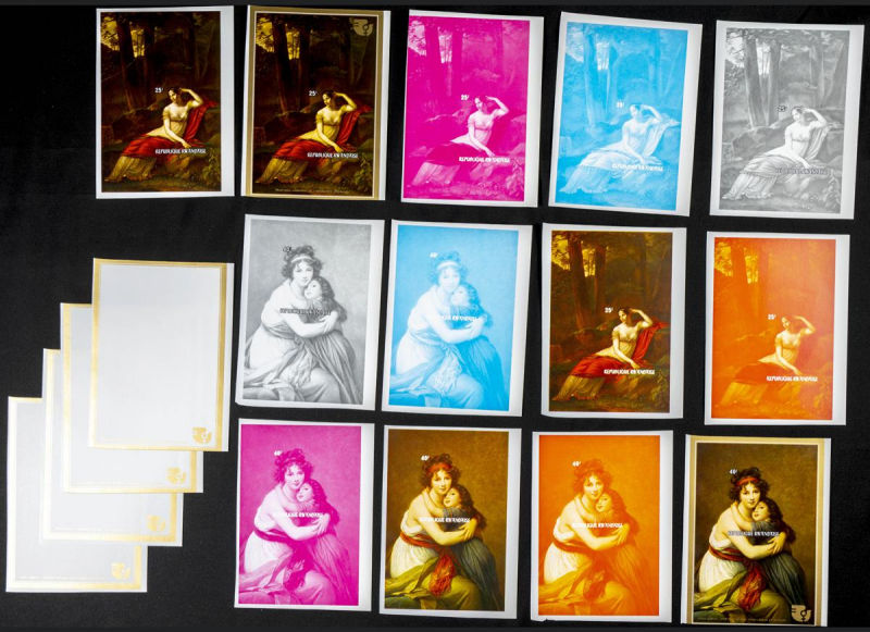 |**|Yvert B61/62. 1975. Int. Womens year. Group of progressive plate proofs of the set. TO EXAM. Description of lots is limited to the cataloguing of the stamps and their characteristics. The total of the material included in