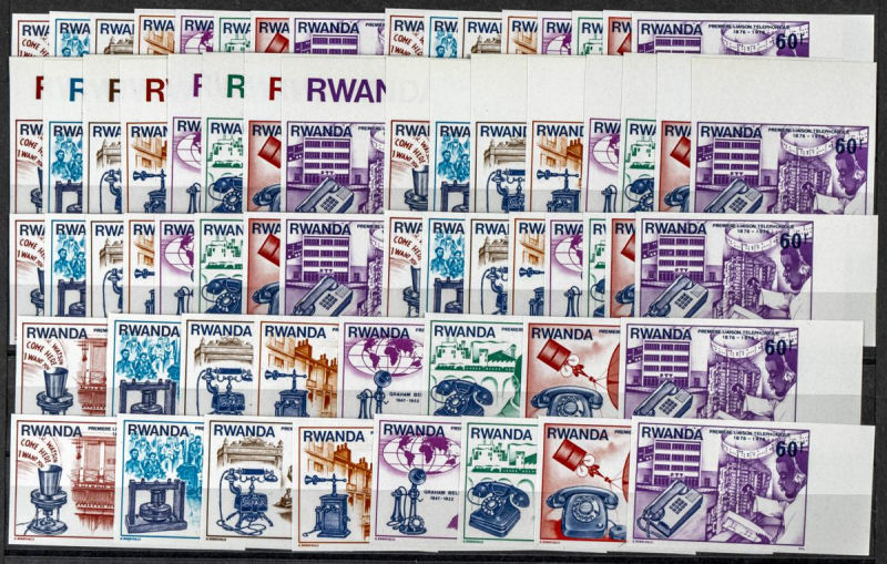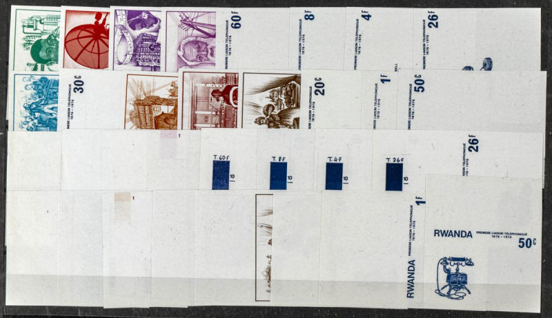 |**|Yvert 721/28. 1976. Telephone centenary. Group of IMPERFORATED sets. TO EXAM. Description of lots is limited to the cataloguing of the stamps and their characteristics. The total of the material included in each case is