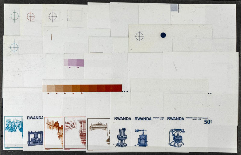 |**|Yvert 721/28. 1976. Telephone centenary. Group of progressive plate proofs of the set. TO EXAM. Description of lots is limited to the cataloguing of the stamps and their characteristics. The total of the material included in