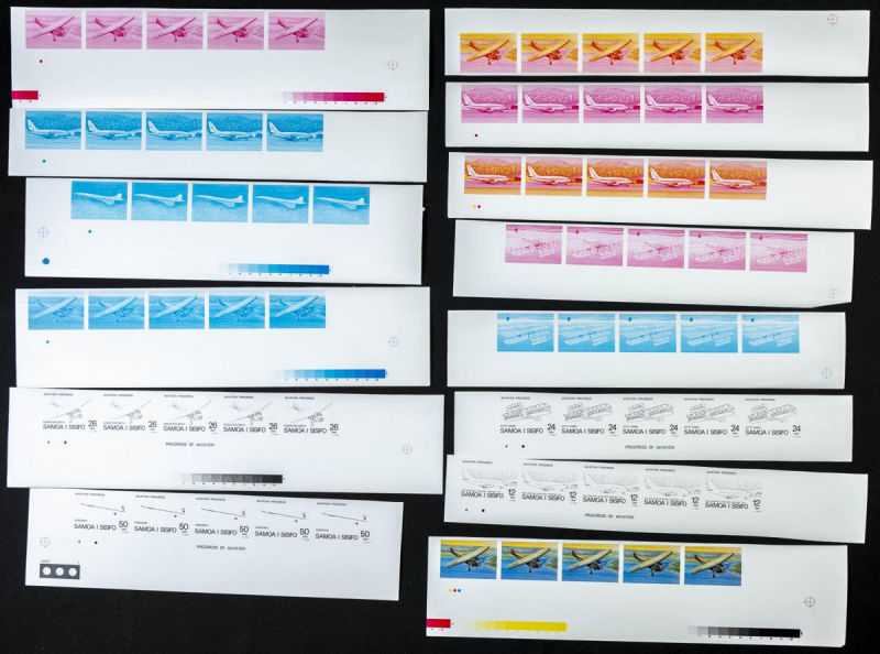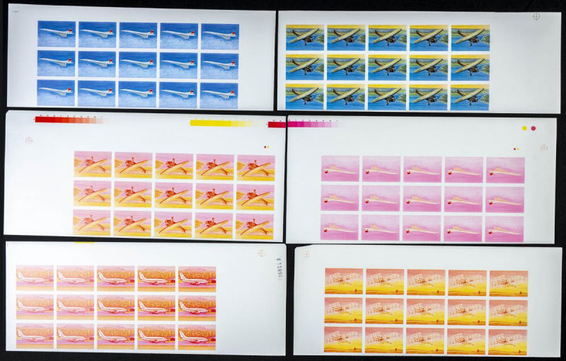 |**|Yvert B15. 1978. Aviation. Group of progressive plate proofs of the set. TO EXAM. Description of lots is limited to the cataloguing of the stamps and their characteristics. The total of the material included in each case is