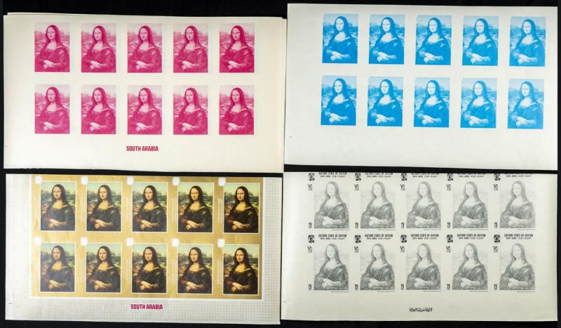 |**|1967. Mona Lisa. Group of progressive plate proofs of the set. (Michel: 122). TO EXAM. Description of lots is limited to the cataloguing of the stamps and their characteristics. The total of the material included in each