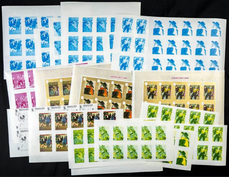 |**|1967. Toulouse de Lautrec. Group of progressive plate proofs of the set. (Michel: 142/49). TO EXAM. Description of lots is limited to the cataloguing of the stamps and their characteristics. The total of the material