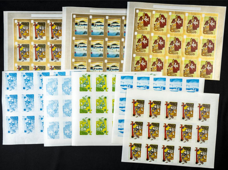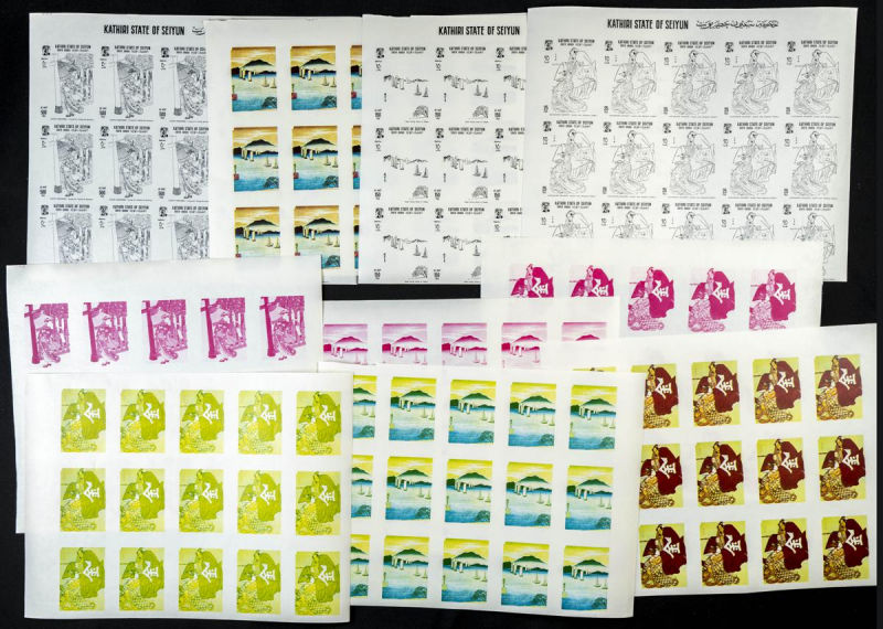 |**|1967. Japanese paintings. Group of progressive plate proofs of the set. (Michel: 157/59). TO EXAM. Description of lots is limited to the cataloguing of the stamps and their characteristics. The total of the material included