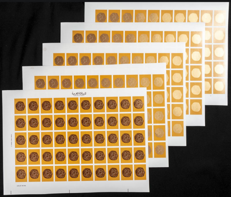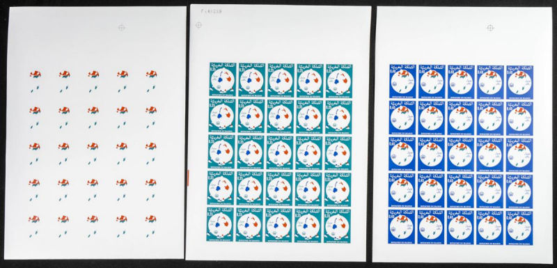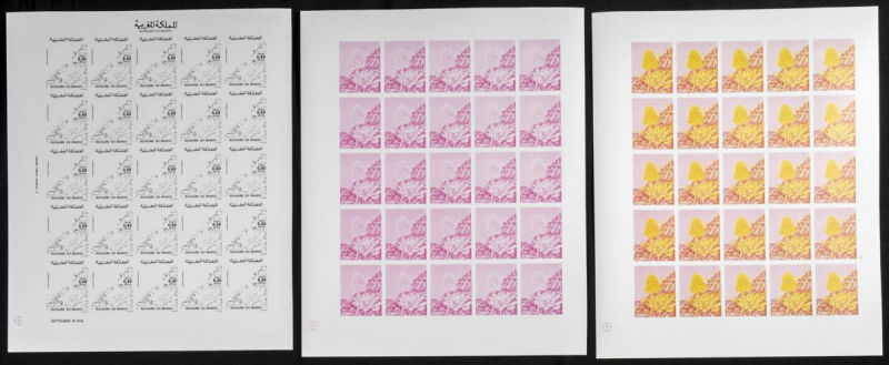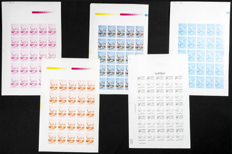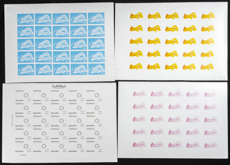 |**|Yvert 790. 1977. Arab postal union. Group of progressive plate proofs of the set. TO EXAM. Description of lots is limited to the cataloguing of the stamps and their characteristics. The total of the material included in each