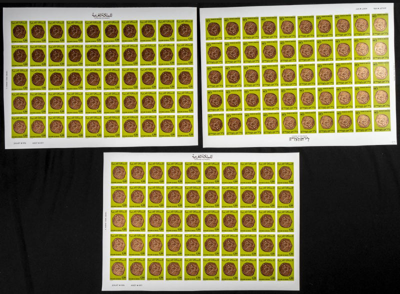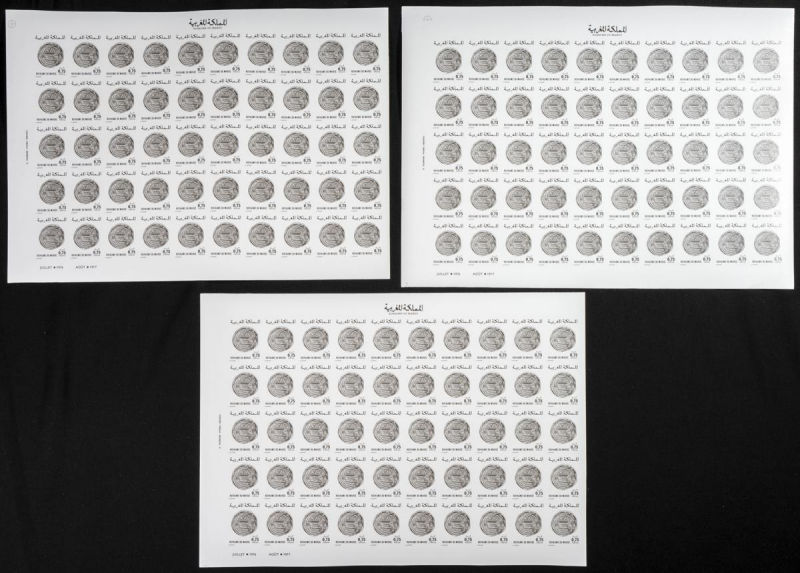 |**|Yvert 797/99. 1977. Coins. Group of IMPERFORATED sets. TO EXAM. Description of lots is limited to the cataloguing of the stamps and their characteristics. The total of the material included in each case is photographed to