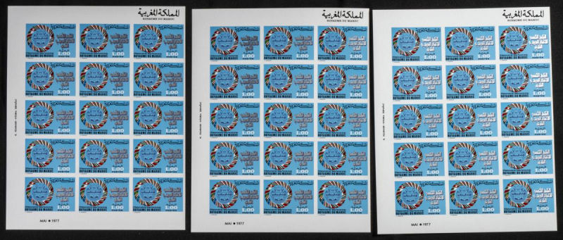 |**|Yvert 790. 1977. Arab postal union. Group of IMPERFORATED sets. TO EXAM. Description of lots is limited to the cataloguing of the stamps and their characteristics. The total of the material included in each case is