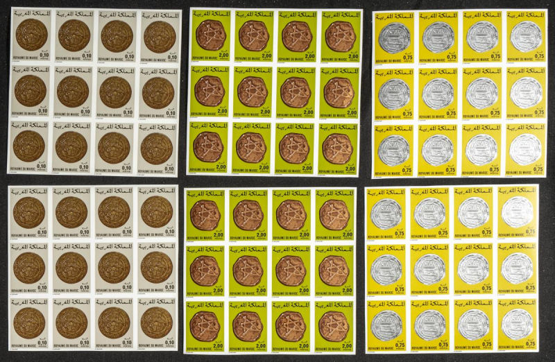 |**|Yvert 769/74. 1976. Coins. Group of IMPERFORATED sets. TO EXAM. Description of lots is limited to the cataloguing of the stamps and their characteristics. The total of the material included in each case is photographed to