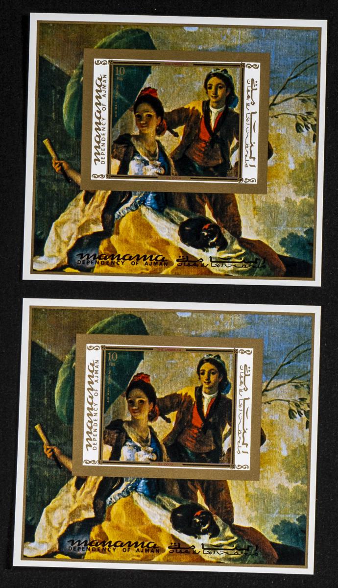 |**|1969. Goya paintings. Group of IMPERFORATED sets. (Michel: B35). TO EXAM. Description of lots is limited to the cataloguing of the stamps and their characteristics. The total of the material included in each case is