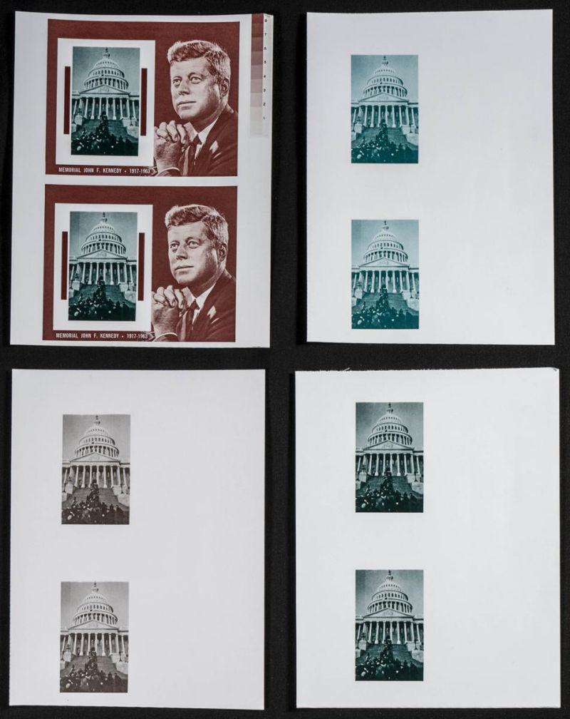 |**|1966. J.F. Kennedy. Group of progressive plate proofs of the set. (Michel: 05/09). TO EXAM. Description of lots is limited to the cataloguing of the stamps and their characteristics. The total of the material included in