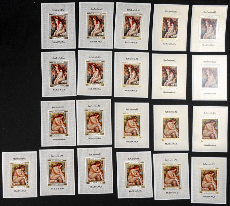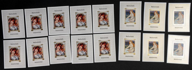 |**|1970. Renoir paintings. Group of complete set IMPERFORATED on individual sheets. (Michel: 270/75). TO EXAM. Description of lots is limited to the cataloguing of the stamps and their characteristics. The total of the material