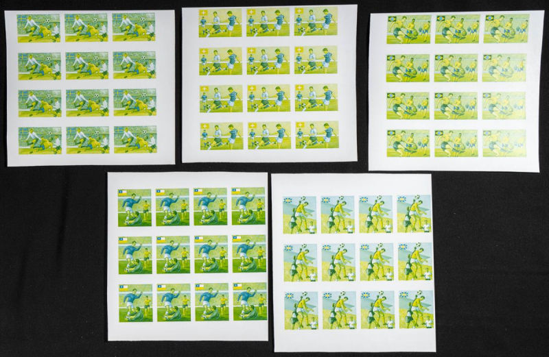 |**|1970. World Cup Football winners. Group of progressive plate proofs of the set. (Michel: 284/89). TO EXAM. Description of lots is limited to the cataloguing of the stamps and their characteristics. The total of the material