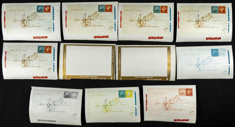 |**|Yvert PA2. 1967. Amphilex. Group of progressive plate proofs of the set. TO EXAM. Description of lots is limited to the cataloguing of the stamps and their characteristics. The total of the material included in each case is