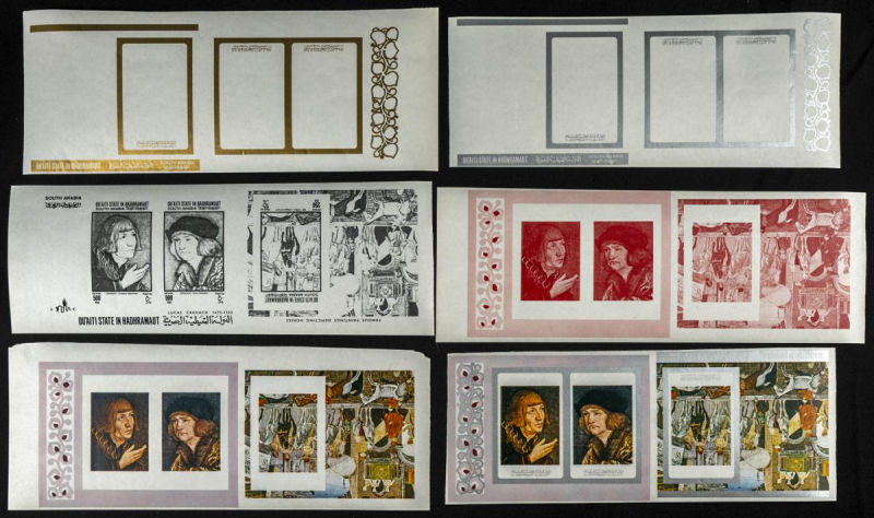 |**|Yvert B18. 1966. Horse paintings & Cranach paintings. Group of progressive plate proofs of the set. TO EXAM. Description of lots is limited to the cataloguing of the stamps and their characteristics. The total of the