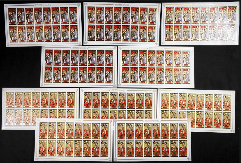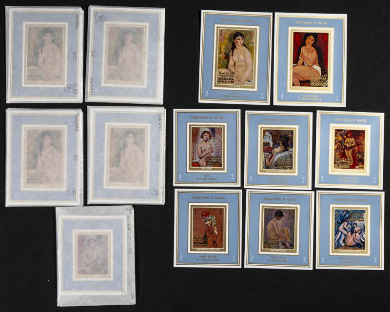 |**|1971. Nude paintings. Group of complete set IMPERFORATED on individual sheets. (Michel: 808/15). TO EXAM. Description of lots is limited to the cataloguing of the stamps and their characteristics. The total of the material