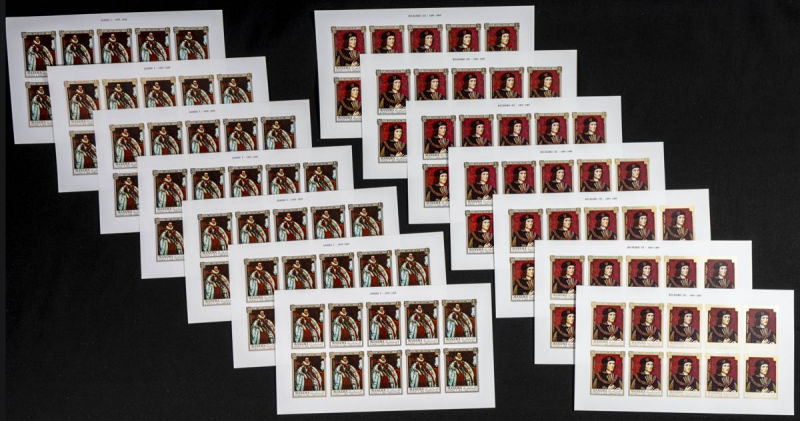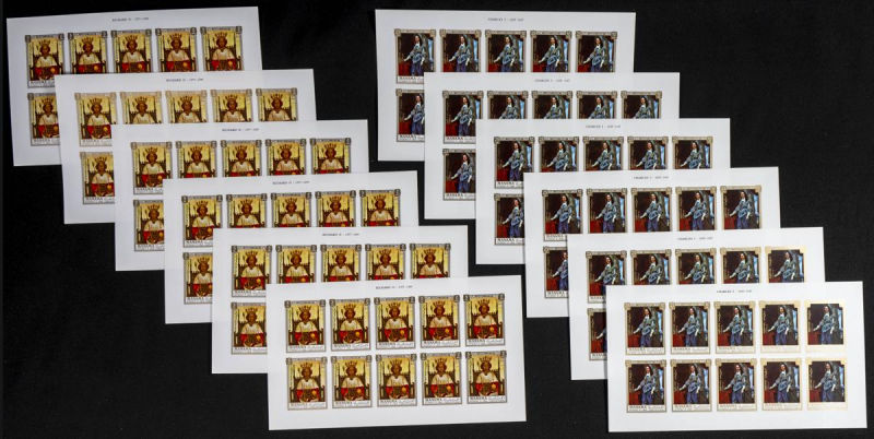 |**|1971. British kings and queens. Group of IMPERFORATED sets. (Michel: 734/45). TO EXAM. Description of lots is limited to the cataloguing of the stamps and their characteristics. The total of the material included in each
